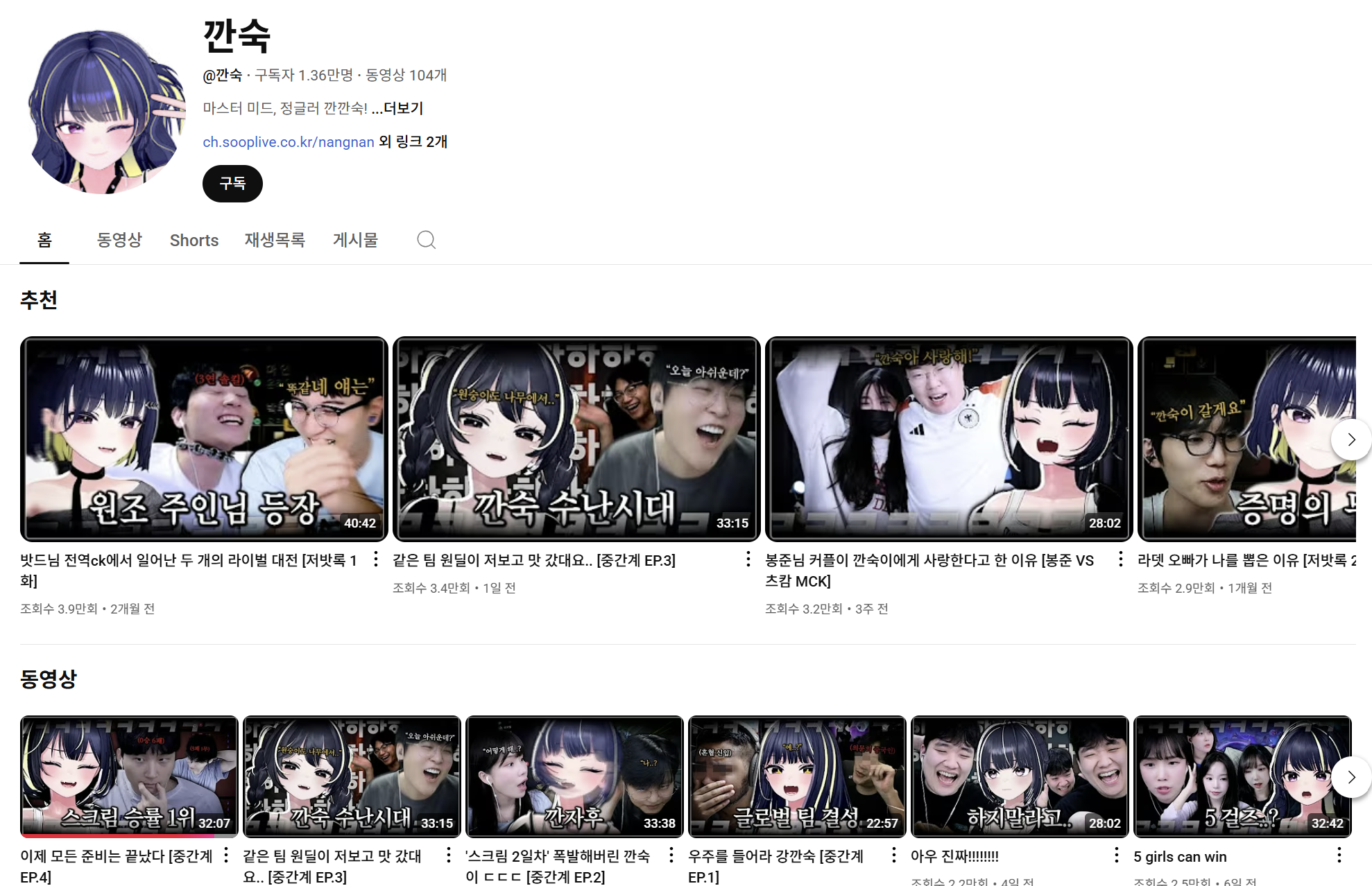 | 주요 플랫폼 | SOOP, 유튜브 ‘깐튜브’ |