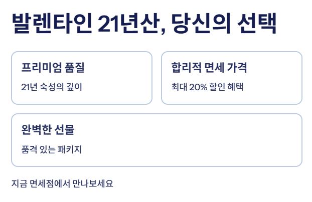해외 면세점이나 공항 면세점에서는 발렌타인 21년산이 약 117~167달러 수준으로 판매되고 있습니다.