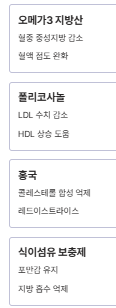 - 오메가3: 중성지방 감소, 혈액 점도 완화
